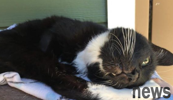 The black and white cat Sammy was 18 years old this year, but was abandoned by his family that he had been with all his life.