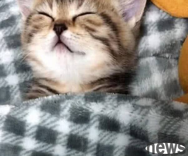 The poop scraper also felt that the cat was uncomfortable or something. When the shit-sweeper felt something was wrong with his pet, he went to see it. When the shit shovel opened the quilt, the shit shovel was amused by the kitten's movements. The kitten sleeps on its back and sleeps heavily. The shit-sweeper lifted the quilt and it still didn't realize it. The little milk cat put her hands on her body and still crossed her feet. It really made me feel cute.