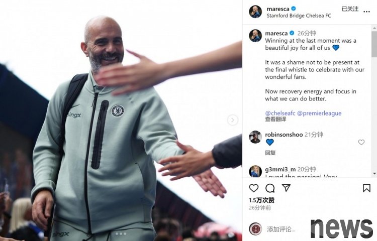 In the 7th round of the Premier League, Chelsea beat Liverpool 2-1 at home. Chelsea coach Maresca celebrated the team's victory, writing: "The last moment victory is a beautiful joy for all of us." "I'm sorry to have failed to...