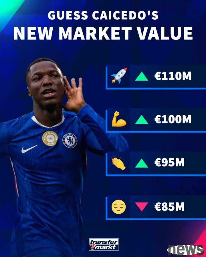 Denzhuan will update the value of Premier League players on the 17th. Today they previewed the change in the value of Chelsea midfielder Caicedo.