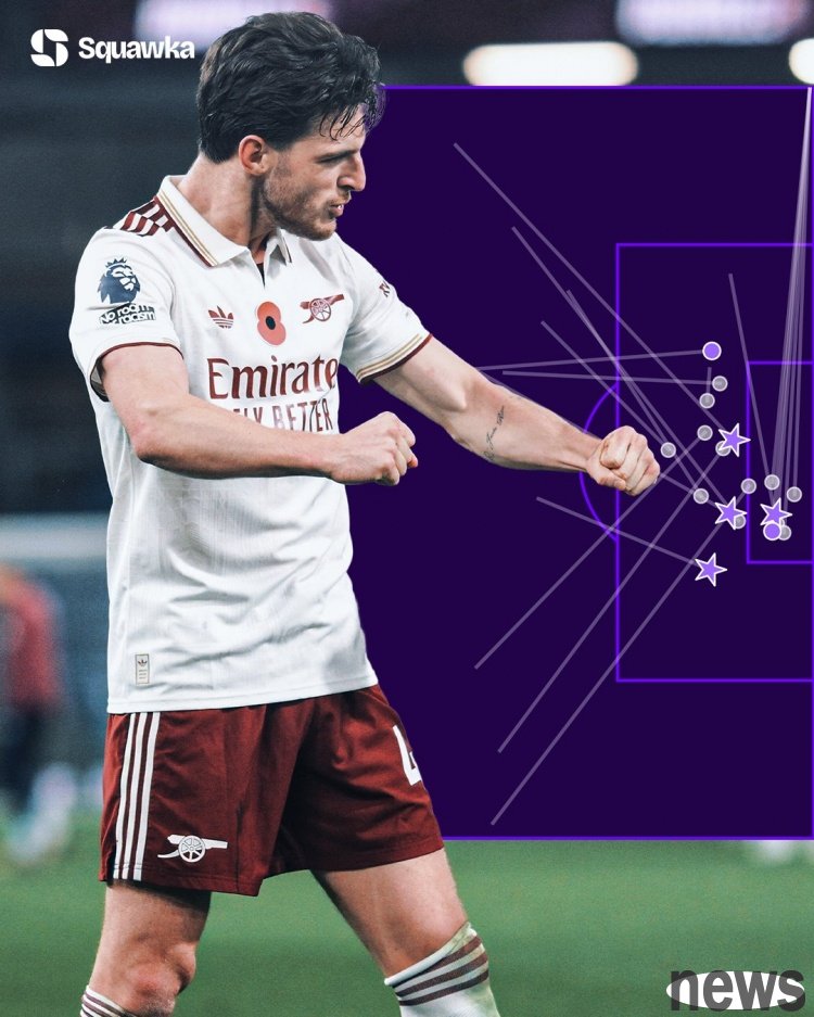 According to Squawka statistics, Arsenal midfielder Rice is the Premier League player who has created the most major opportunities this year.